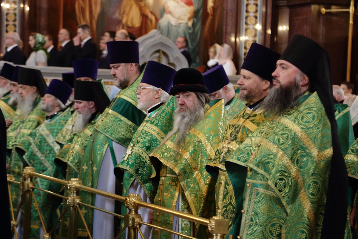 За Литургией Его Святейшеству сослужили: митрополит Воскресенский Григорий, управляющий делами Московской Патриархии, первый викарий Патриарха Московского и всея Руси по г. Москве, наместник Новоспасского ставропигиального монастыря; митрополит Каширский Феогност, председатель Синодального отдела по монастырям и монашеству, наместник Донского ставропигиального монастыря; митрополит Нижегородский и Арзамасский Георгий; епископ Балахнинский Илия; епископ Сормовский Иннокентий; епископ Выксунский и Павловский Гедеон; епископ Городецкий и Ветлужский Парамон; епископ Новосибирский и Бердский Варфоломей; епископ Троицкий и Южноуральский Павел; епископ Раменский Алексий, личный секретарь Святейшего Патриарха Кирилла; протопресвитер Владимир Диваков, секретарь Патриарха Московского и всея Руси по г. Москве; протоиерей Михаил Рязанцев, ключарь Храма Христа Спасителя; протоиерей Георгий Мартынов; архидиакон Константин Барган; протодиаконы: Николай Филатов, Дионисий Пряхин; диакон Иоанн Клинцов, духовенство Нижегородской митрополии и г. Москвы.