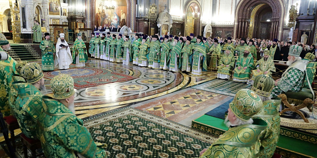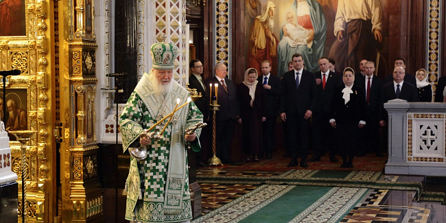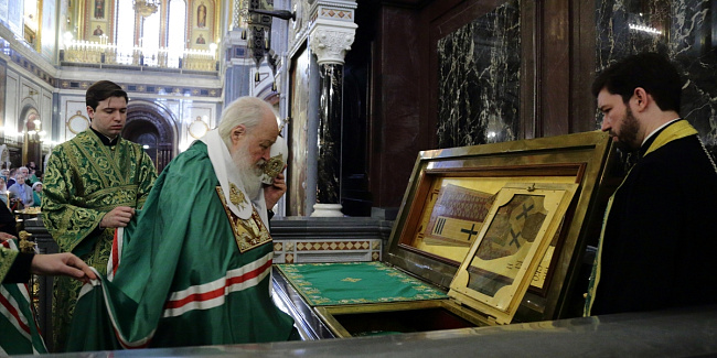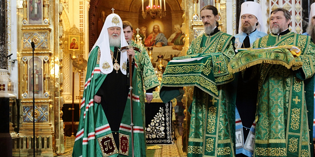 Святейший Патриарх Кирилл совершил славление празднику Входа Господня во Иерусалим, после чего обратился к верующим с Первосвятительским словом.
