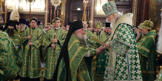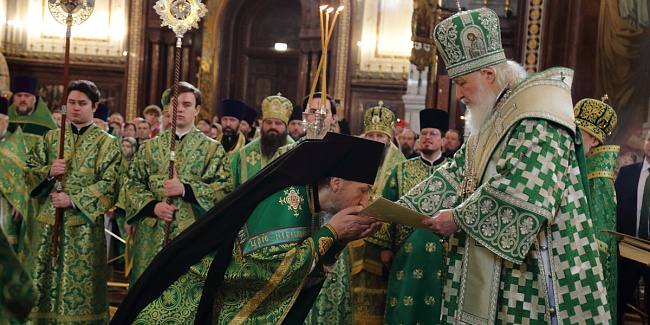 В праздник Входа Господня в Иерусалим Предстоятель Русской Церкви совершил Литургию в Храме Христа Спасителя и возглавил хиротонию архимандрита Иосии (Сидунова) во епископа Лысковского и Лукояновского
